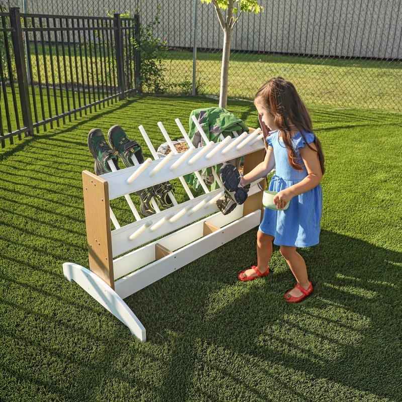 Designed for teachers and caregivers, this durable rack makes it easy to rinse, dry, and organize kids’ outdoor gear in one place. It’s weatherproof, easy to clean, and built to handle everyday outdoor use while keeping everything neat and accessible.