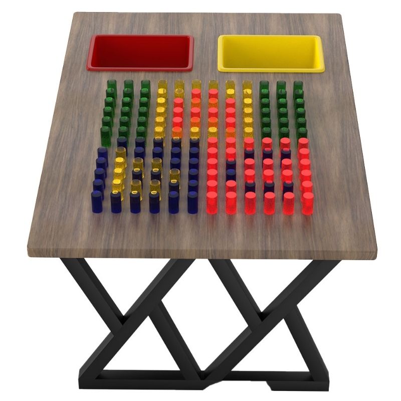 • Tabletop & Grid: Furniture-grade plywood with hardwood veneer (maple or walnut) OR black HDPE