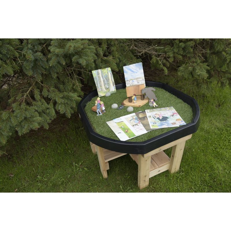 Little ones can reach every corner of their favorite sensory activities without having to strain or lean too far over. This sturdy cedar base keeps the included black tuff tray secure while kids collaborate on messy play or imaginative small-world scenes. It is light enough to move around your yard but tough enough to handle daily use in a busy daycare or preschool.